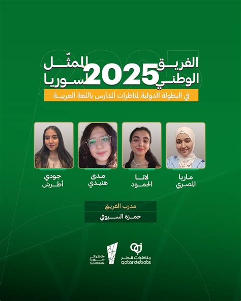 أول مشاركة لسورية في البطولة الدولية لمناظرات المدارس باللغة العربية بالدوحة"ISDC"، كانت سوريا حاضرة في الدورة السابعة للبطولة التي كانت من تنظيم مركز مناظرات قطر،