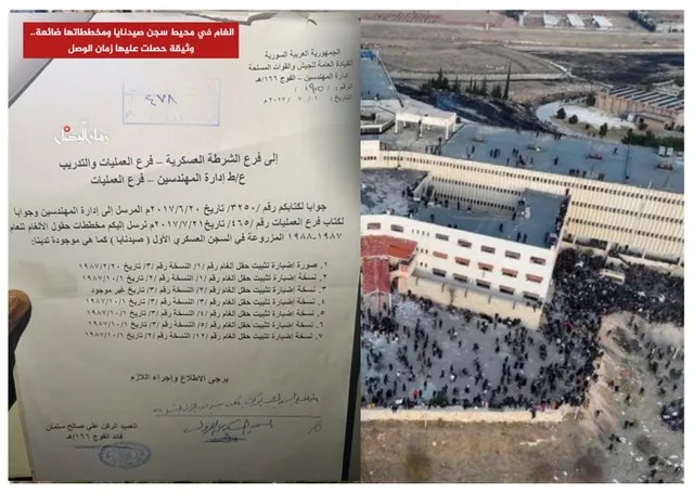 حصل موقع "زمان الوصل" على نسخة من وثيقة رسمية صادرة عن إدارة المهندسين في وزارة الدفاع السورية، تكشف عن وجود اثني عشر حقل ألغام مزروعة حول سجن صيدنايا العسكري، دون توفر أي خرائط أو مخططات معتمدة تُحدّد مواقعها بدقة، في ظل غياب أي معلومات عن عمليات إزالة أو تحييد لتلك الألغام حتى اليوم.